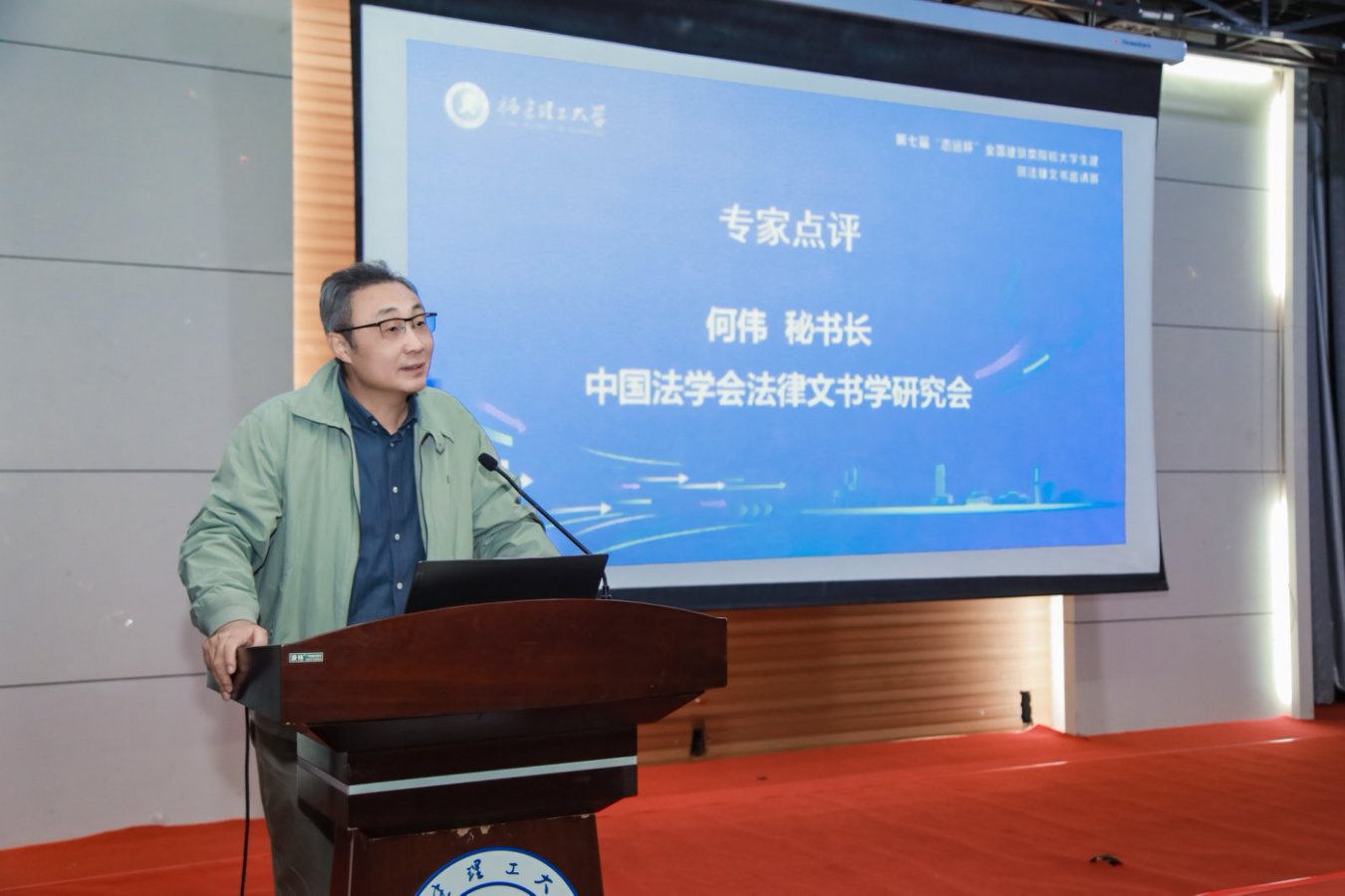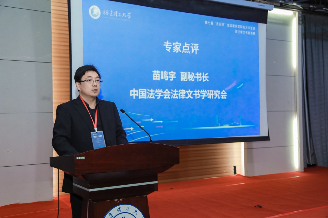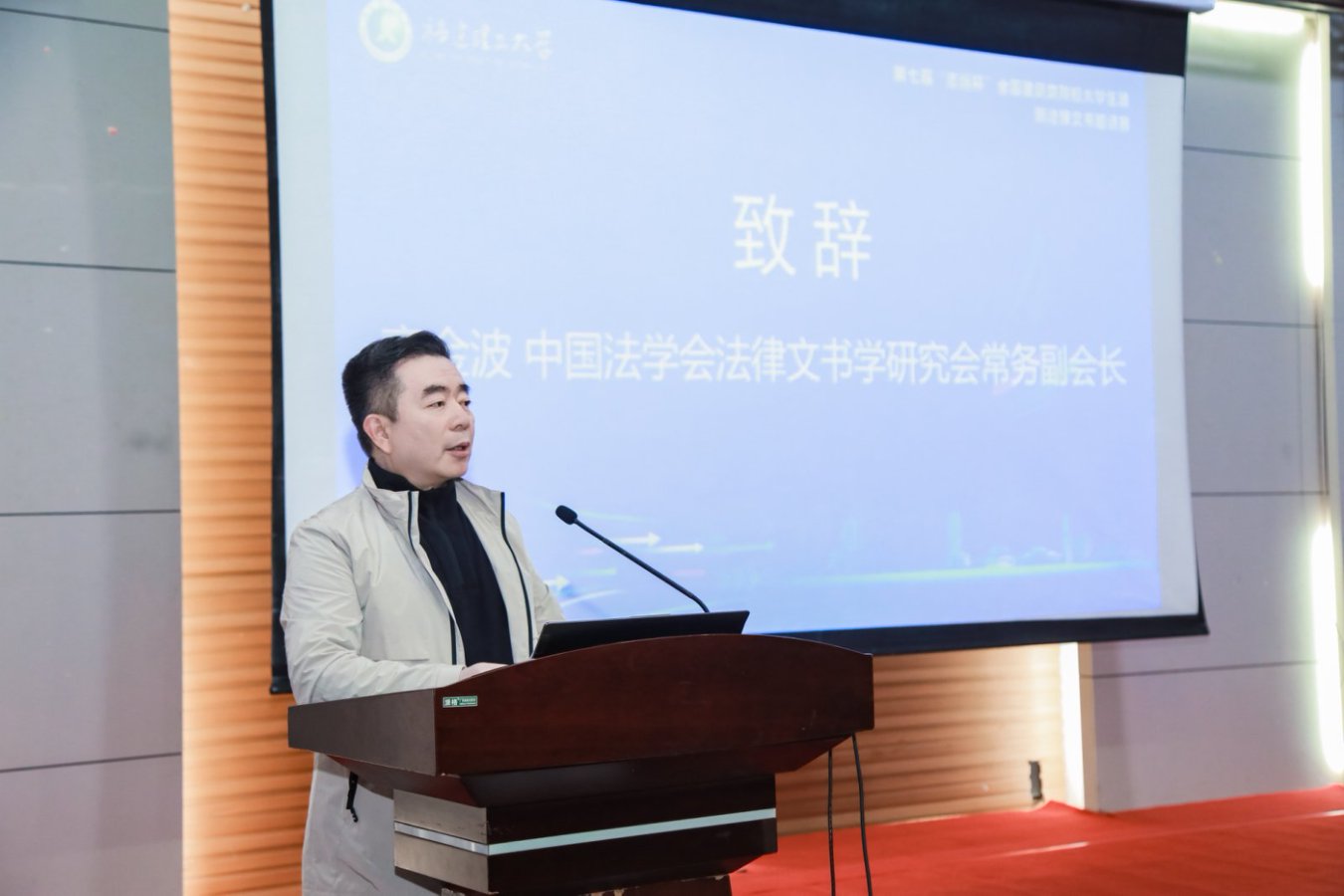 高金波介绍了学会发展历程,指出举办大学生建筑法律文书邀请赛是培养高素质法治人才的创新举措,为中国法律文书研究与社会实践提供了新模式和新路径。