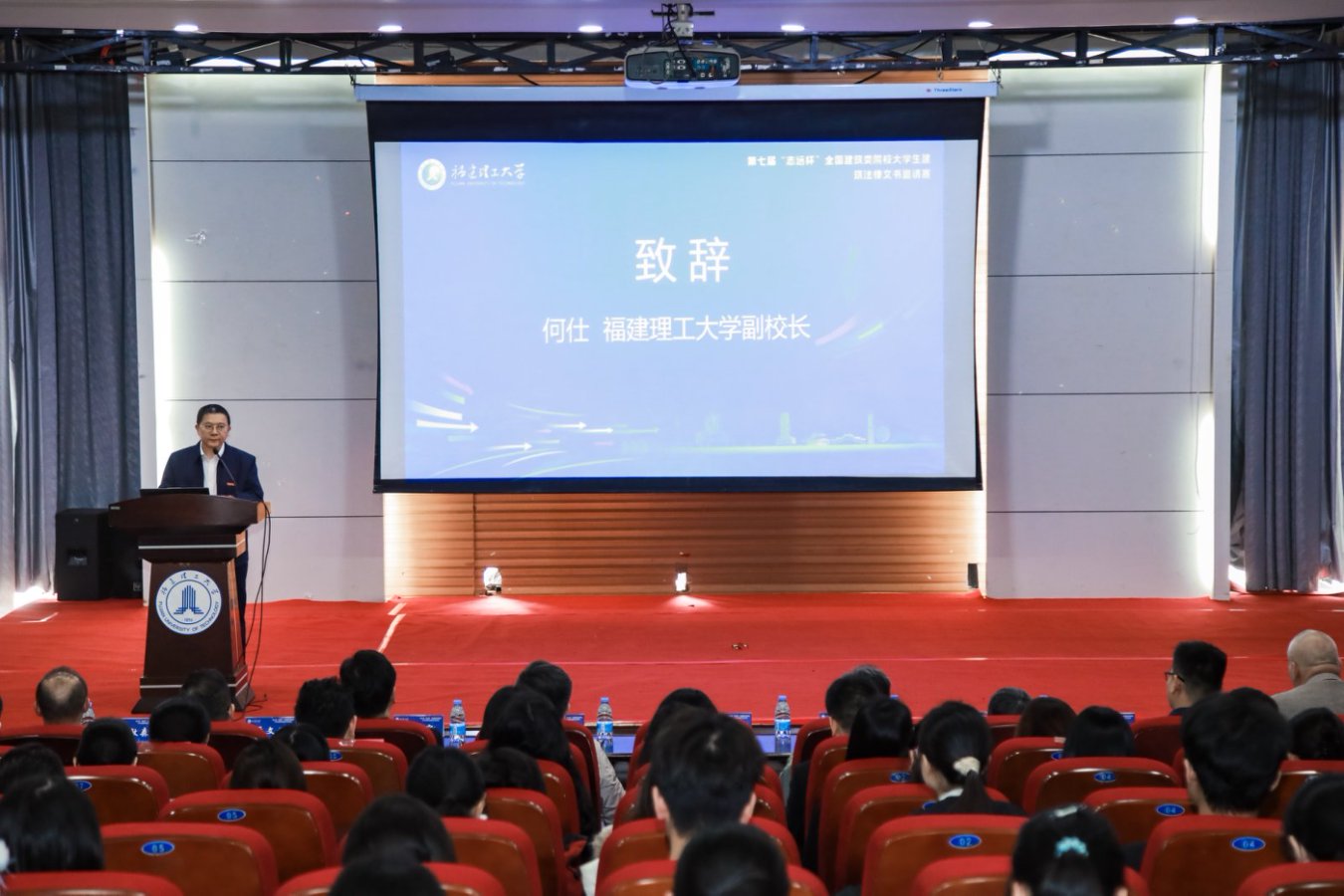 何仕在开幕致辞中向参加活动的领导专家和师生代表表示热烈欢迎,感谢他们对学校事业发展的关注和支持,介绍了学校在工程建设领域人才培养、科技创新、社会服务等方面取得的成效以及对接法治中国建设、建筑行业转型需求培养复合型法治人才的路径探索。