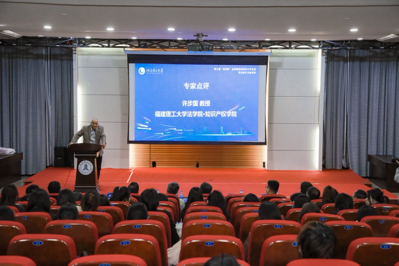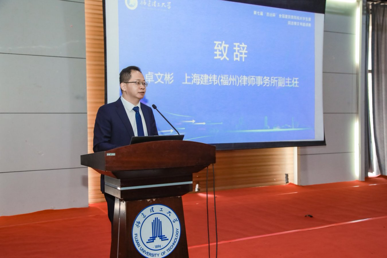 福建大中律师事务所、上海建纬(福州)律师事务所负责人在开幕式上分别作了发言,我校法学院·知识产权学院有关活动负责人宣读了赛事规则。与会专家学者在闭幕式上对参赛作品及选手表现进行了点评,山东建筑大学社会科学处负责人王淑华代表第八届建筑法律文书大赛承办单位作了发言。